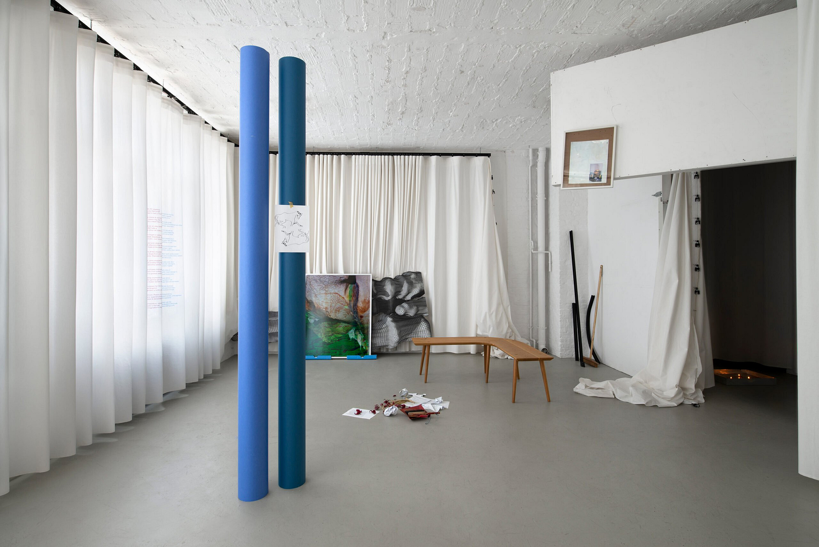 Operating as a platform for exchange between artists, GUTS encourages the development of original presentation formats in relation to this soft, wall-less space.