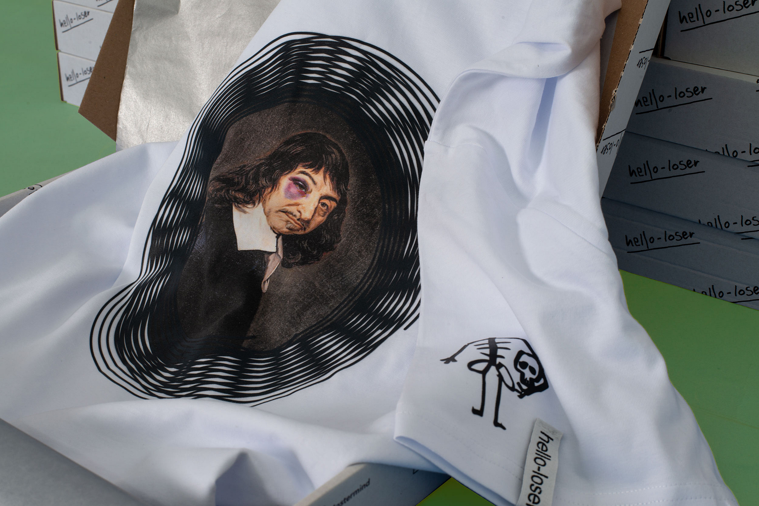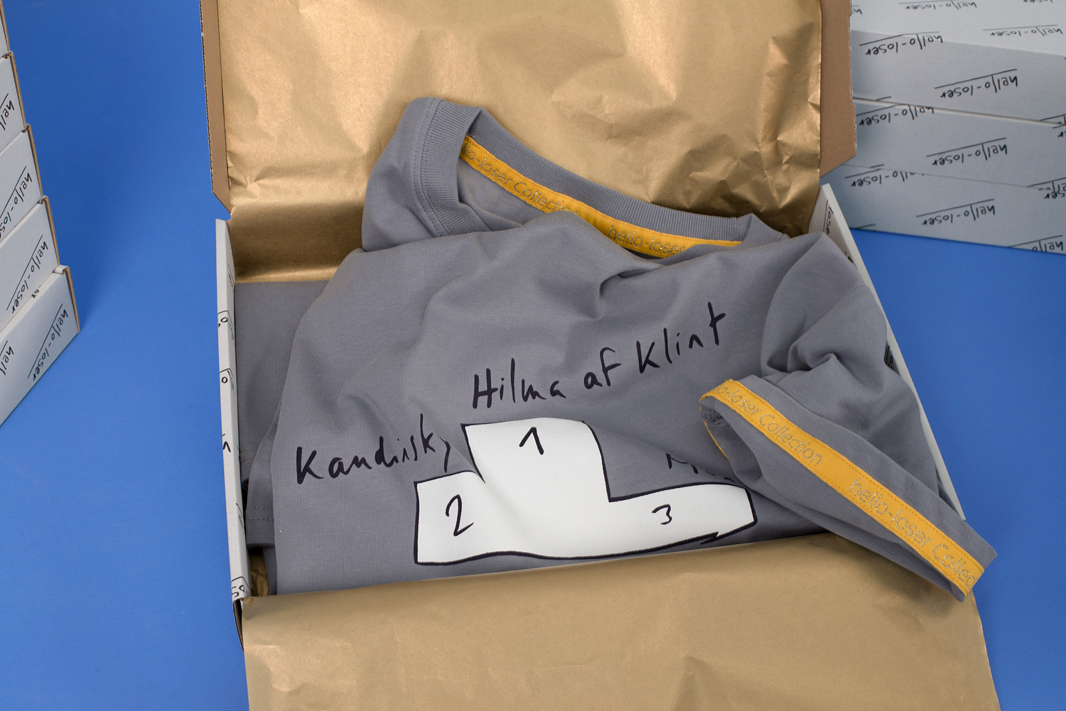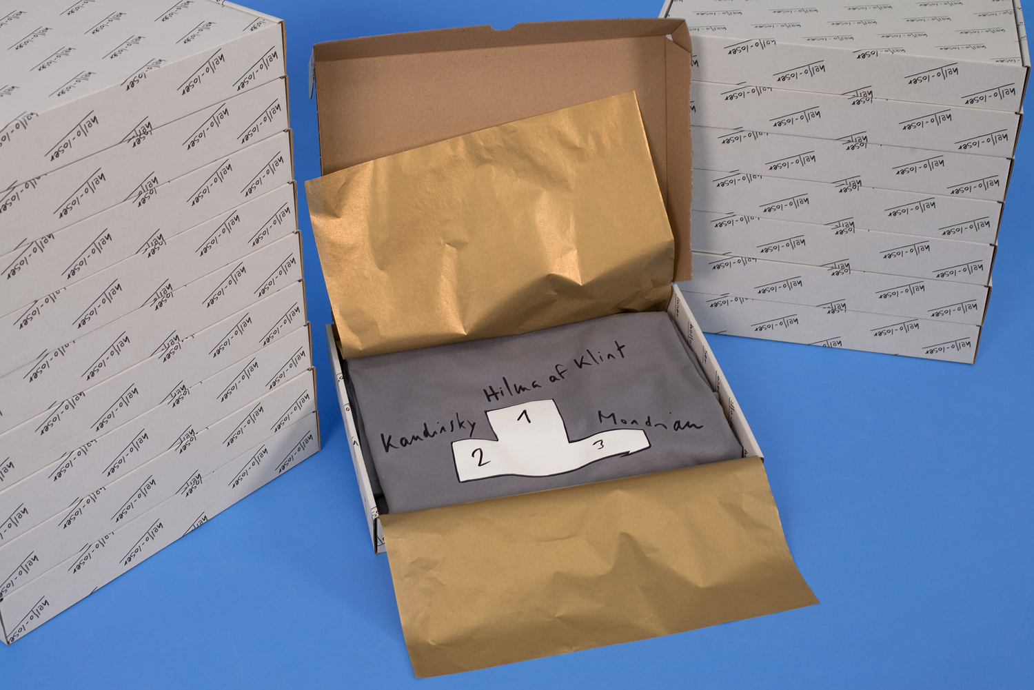 Multiples explore reproductible forms, most often artist designed t-shirts that comment on art, society, and the absurdity of life.