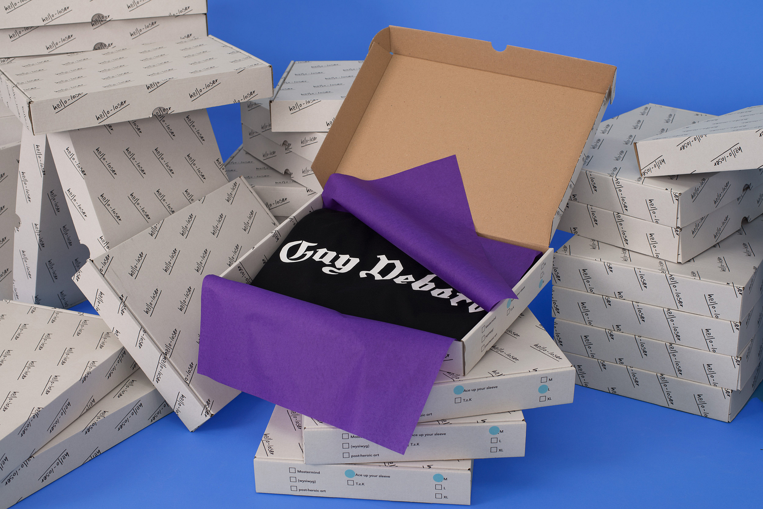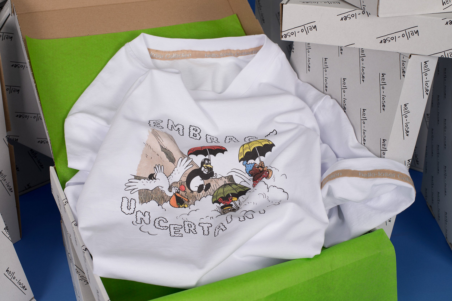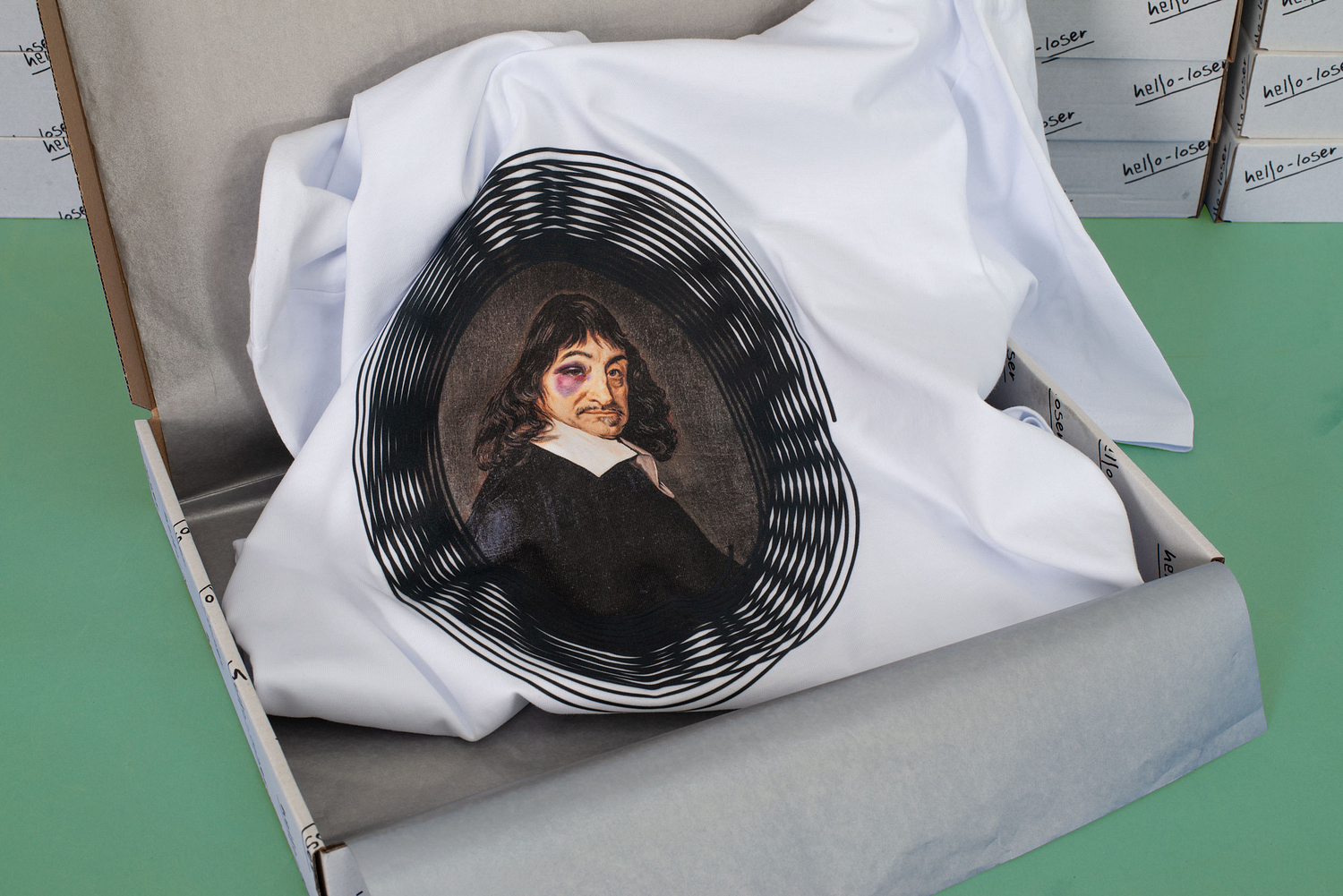 Multiples explore reproductible forms, most often artist designed t-shirts that comment on art, society, and the absurdity of life.