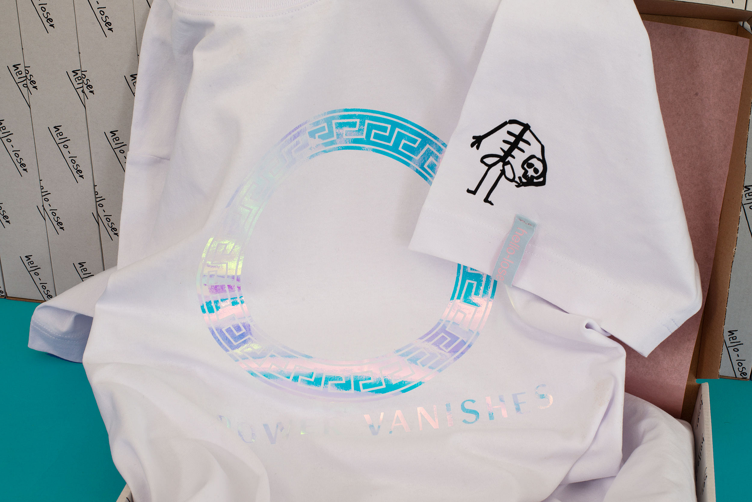 iridescent sublimationfoil on cotton.